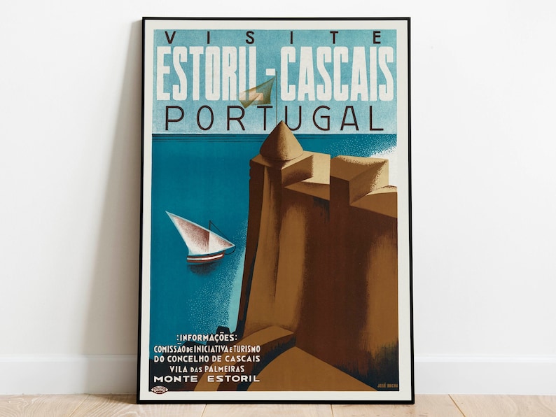 Estoril-Cascais Travel Poster Vintage Poster Lisbon Wall Art Canvas Framed Art Hanger Framed Print Portugal Art Prints