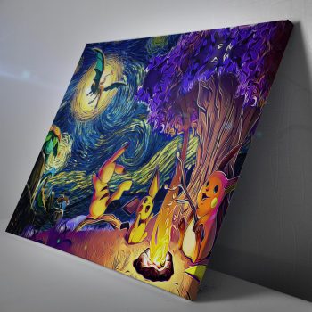 Pokemon Starry Night Campfire Canvas Poster Print Wall Art Decor