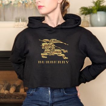 Burberry Logo Gold Luxury Crop Pullover Hoodie For Lady CPH1073