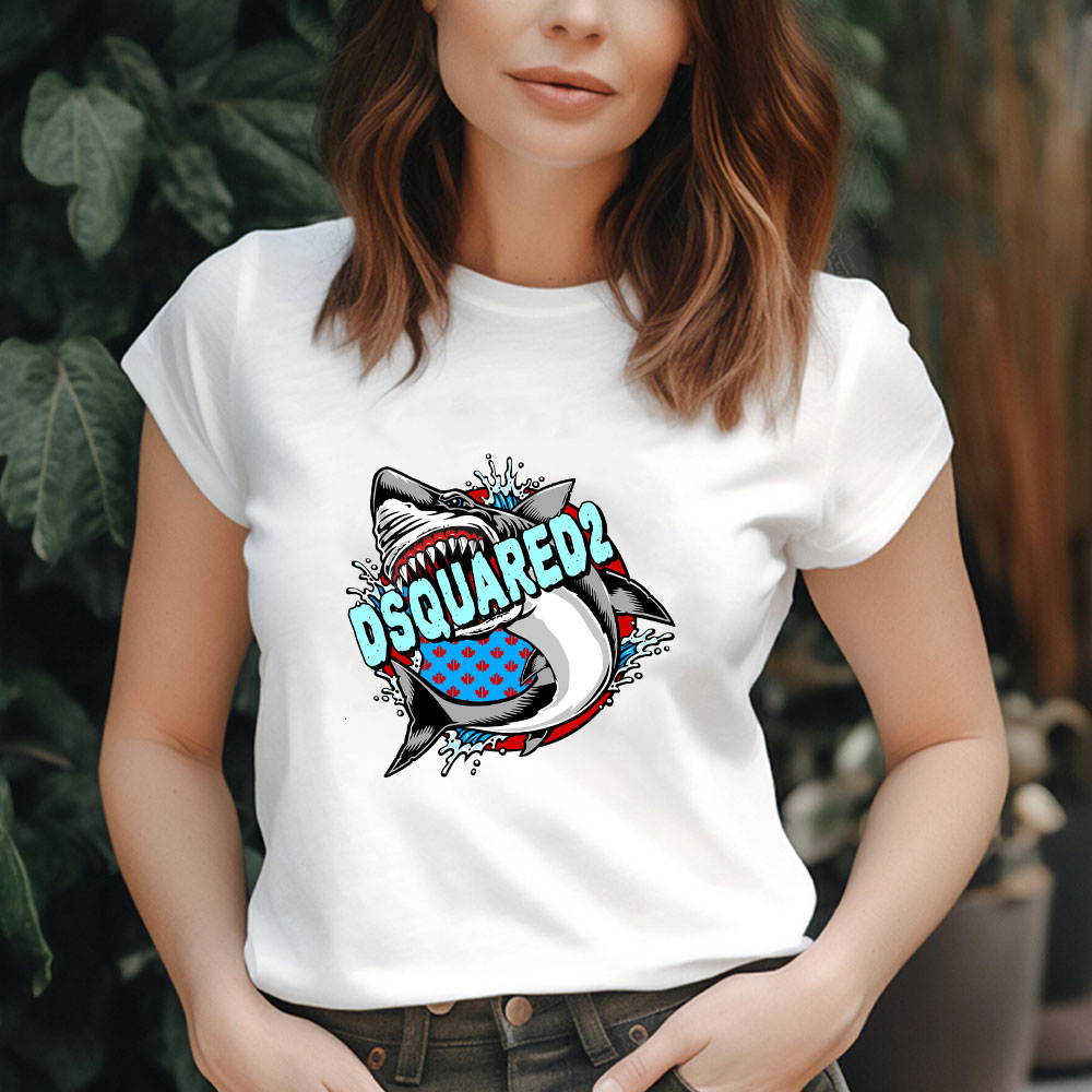 Cartoon Shark Dsquared2 Brand Lady Shirt Women Tee TLT5361