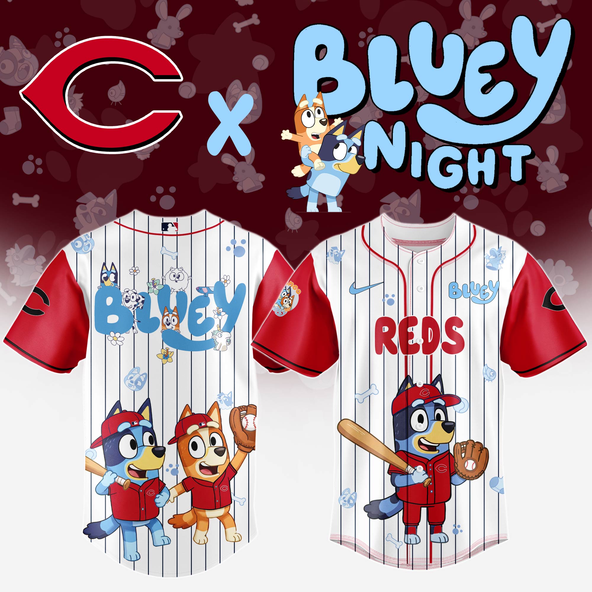 Cincinnati Reds MLB x Bluey And Bingo Special Edition Baseball Jersey 2025 DBJ1007