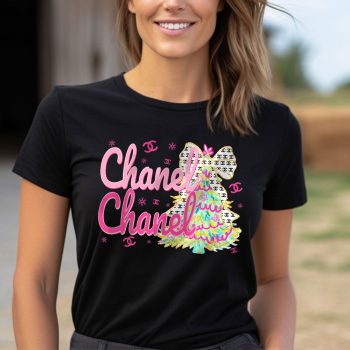 Colorful Glitter Holly Jolly Coquette Christmas Tree Chanel Unisex T-Shirt Cotton Tee TAT21993