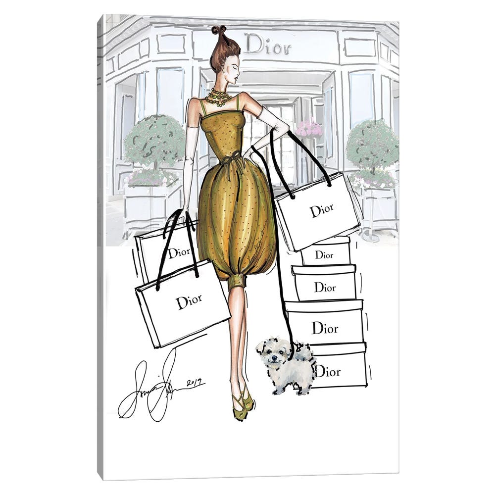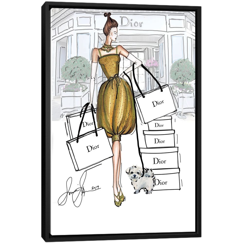 Dior Green Dress – Black Framed Canvas, Stretched Wrapped Canvas Print, Wall Art Decor