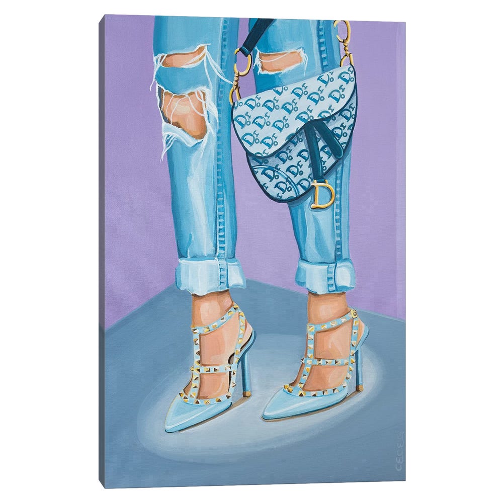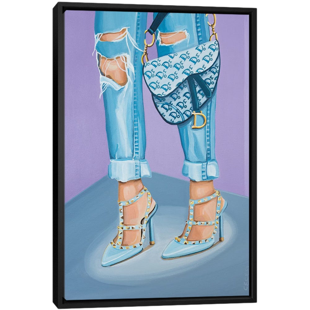 Dior Saddle Bag and Valentino Heels – Black Framed Canvas, Stretched Wrapped Canvas Print, Wall Art Decor