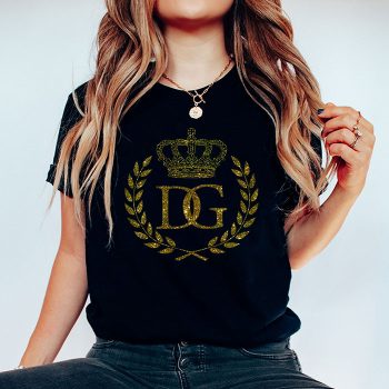 Dolce & Gabbana Crown Gold Luxury Lady T-Shirt Luxury Tee For Women LDS1237