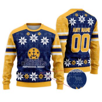 ECHL Norfolk Admirals Personalized Navy V-shaped Hockey Jersey