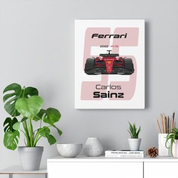 Ferrari Formula 1 2022 Carlos Sainz #55 Racing Car F1-75 Canvas Art Print Gift for F1 Fan Formula One – White