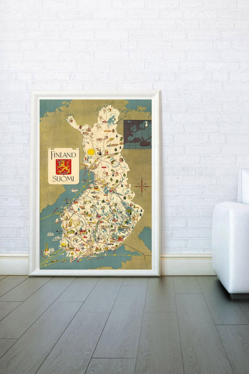 Finland Old Map Suomi Map Suomi Old Map Finland Travel Print Vintage Travel Print Finland Poster Finland Print Suomi Poster