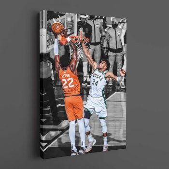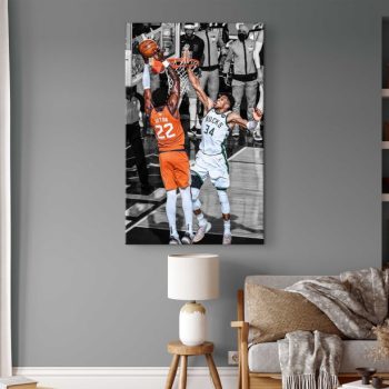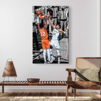 Giannis Antetokounmpo Poster Milwaukee Bucks Fan Gift Giannis Antetokounmpo clutch block in NBA Finals 2021 Basketball Canvas Wall Art