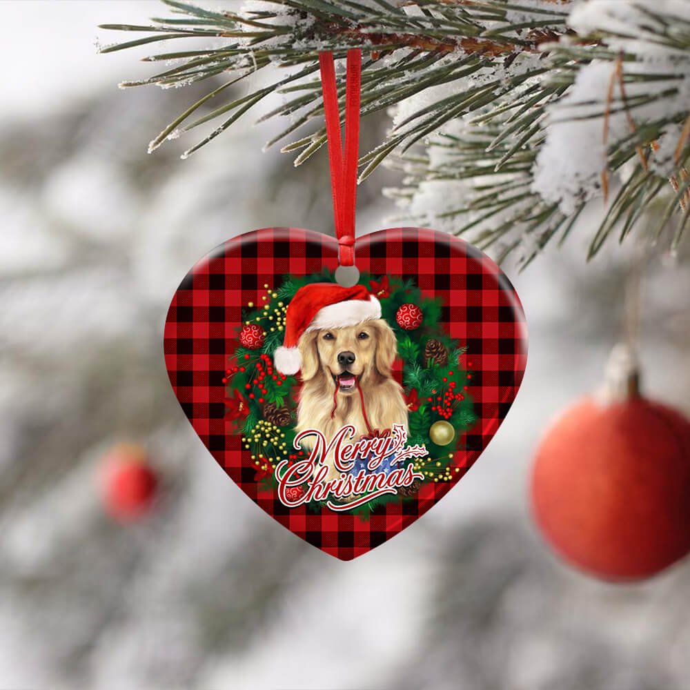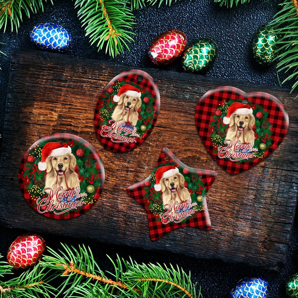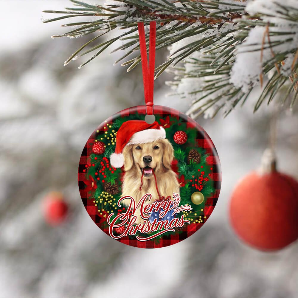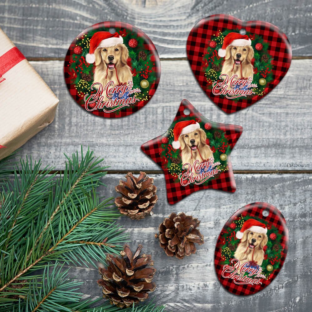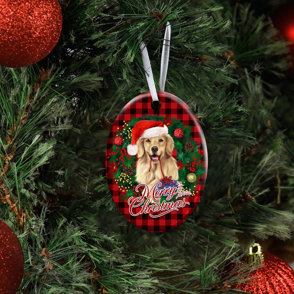 Golden Retriever Wreath Christmas Ceramic Ornament