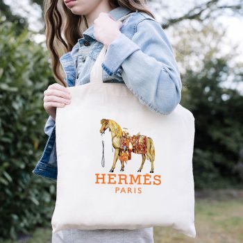 Hermes Paris Horse Original Logo Cotton Canvas Tote Bag TTB1509
