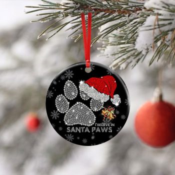 I Believe In Santa Paws. Christmas Dog Lovers Ceramic Ornament