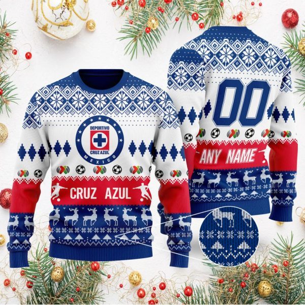 Liga MX Cruz Azul Personalized Name/Number Ugly Sweater