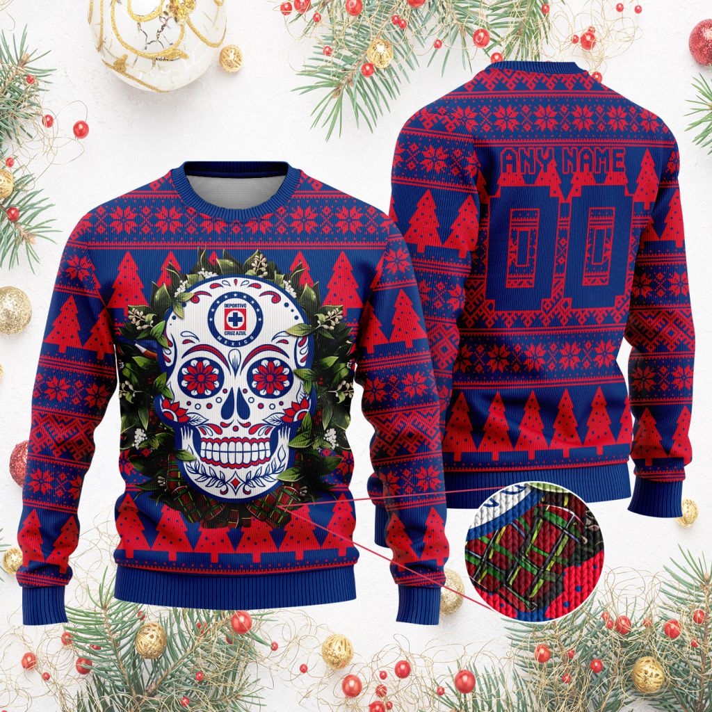 LIGA MX Cruz Azul Special Sugar Skull Christmas Ugly Sweater