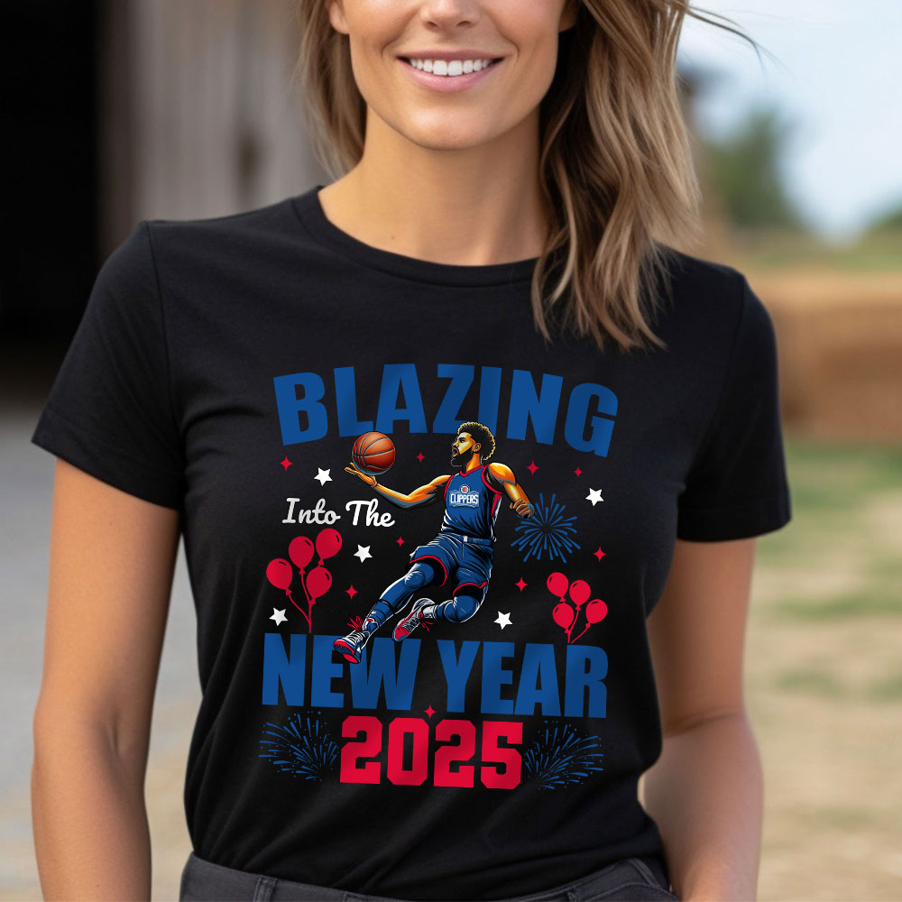 Los Angeles Clippers Blazing Into The New Year NBA Gift For Fan Hello 2025 Unisex T-Shirt Cotton Tee TAT22716