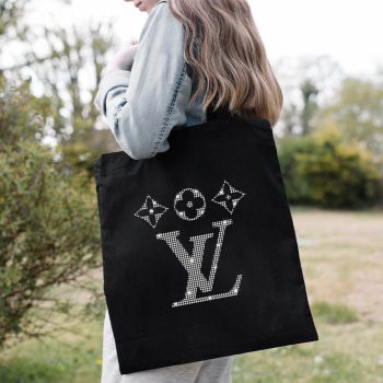 Louis Vuitton Logo Luxury Diamonds Cotton Canvas Tote Bag TTB1662