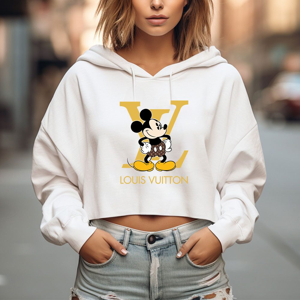 Louis Vuitton Logo Luxury Monogram Canvas Pattern Mickey Mouse Crop Pullover Hoodie For Lady CPH1579