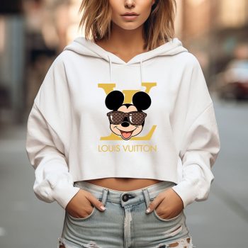 Louis Vuitton Logo Luxury Monogram Canvas Pattern Mickey Mouse Crop Pullover Hoodie For Lady CPH1601