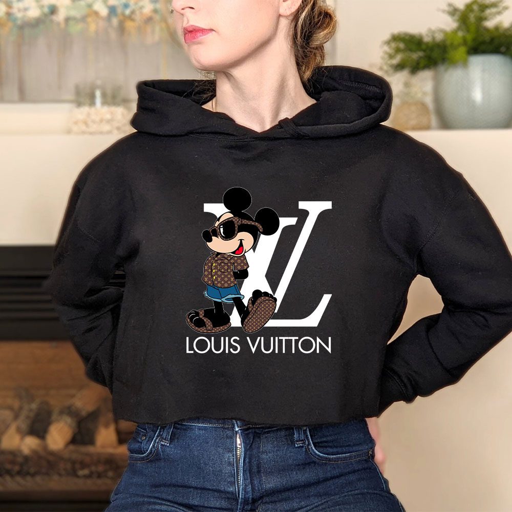 Louis Vuitton Logo Luxury Monogram Canvas Pattern Mickey Mouse Crop Pullover Hoodie For Lady CPH1656