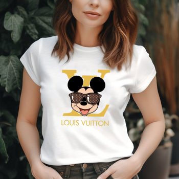 Louis Vuitton Logo Luxury Monogram Canvas Pattern Mickey Mouse Lady T-Shirt Luxury Tee For Women LDS1603