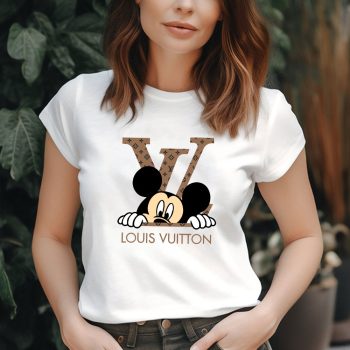 Louis Vuitton Logo Luxury Monogram Canvas Pattern Mickey Mouse Lady T-Shirt Luxury Tee For Women LDS1702