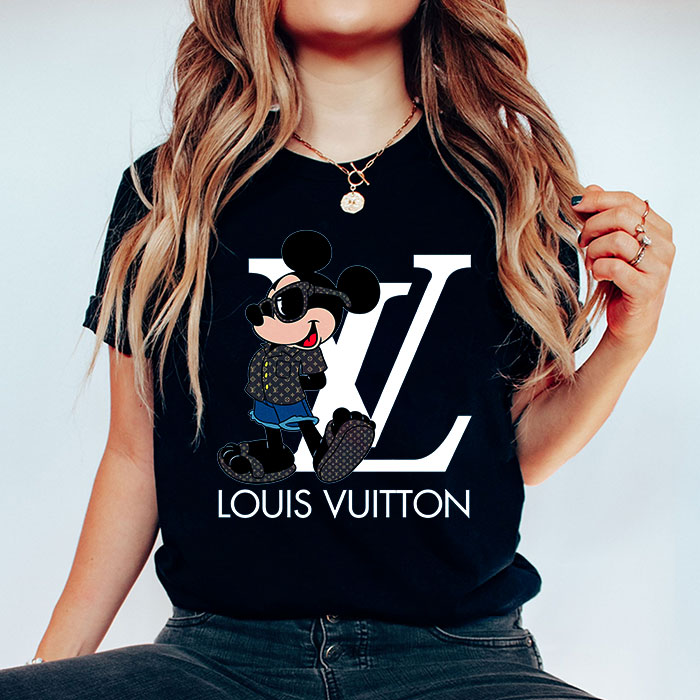 Louis Vuitton Logo Luxury Monogram Canvas Pattern Mickey Mouse Lady T-Shirt Luxury Tee For Women LDS1658