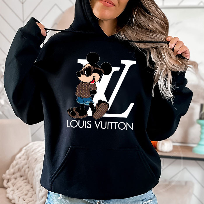 Louis Vuitton Logo Luxury Monogram Canvas Pattern Mickey Mouse Unisex Pullover Hoodie TB151