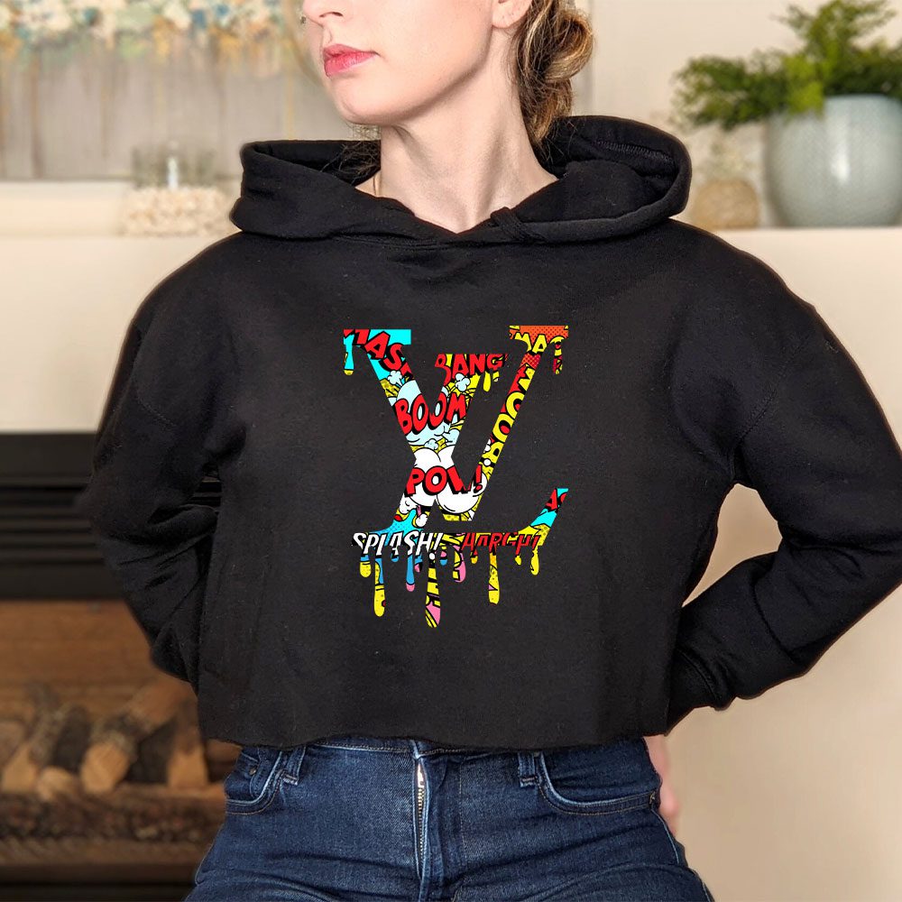 Louis Vuitton Luxury Comic Boom Pattern Crop Pullover Hoodie For Lady CPH1530