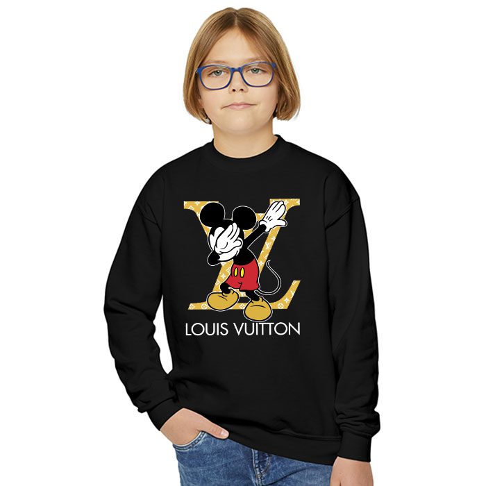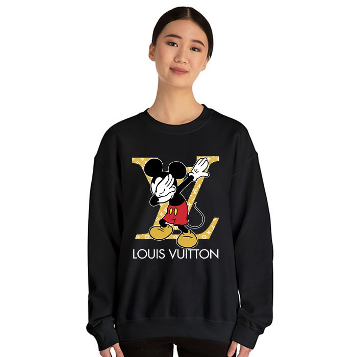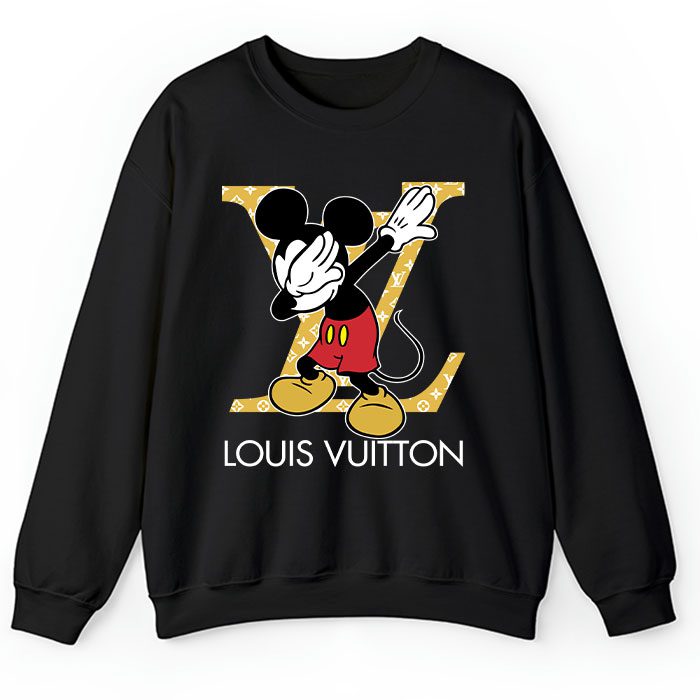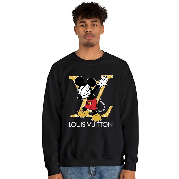 Louis Vuitton Luxury Logo Yellow And White Monogram Canvas Pattern Mickey Mouse Dabbing Crewneck Sweatshirt CSTB1159