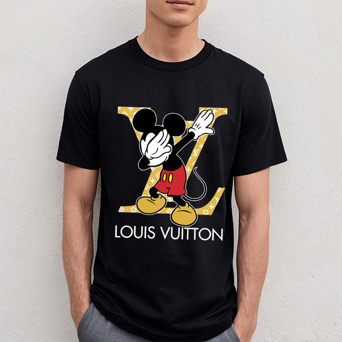 Louis Vuitton Luxury Logo Yellow And White Monogram Canvas Pattern Mickey Mouse Dabbing LV Unisex T-Shirt CB406