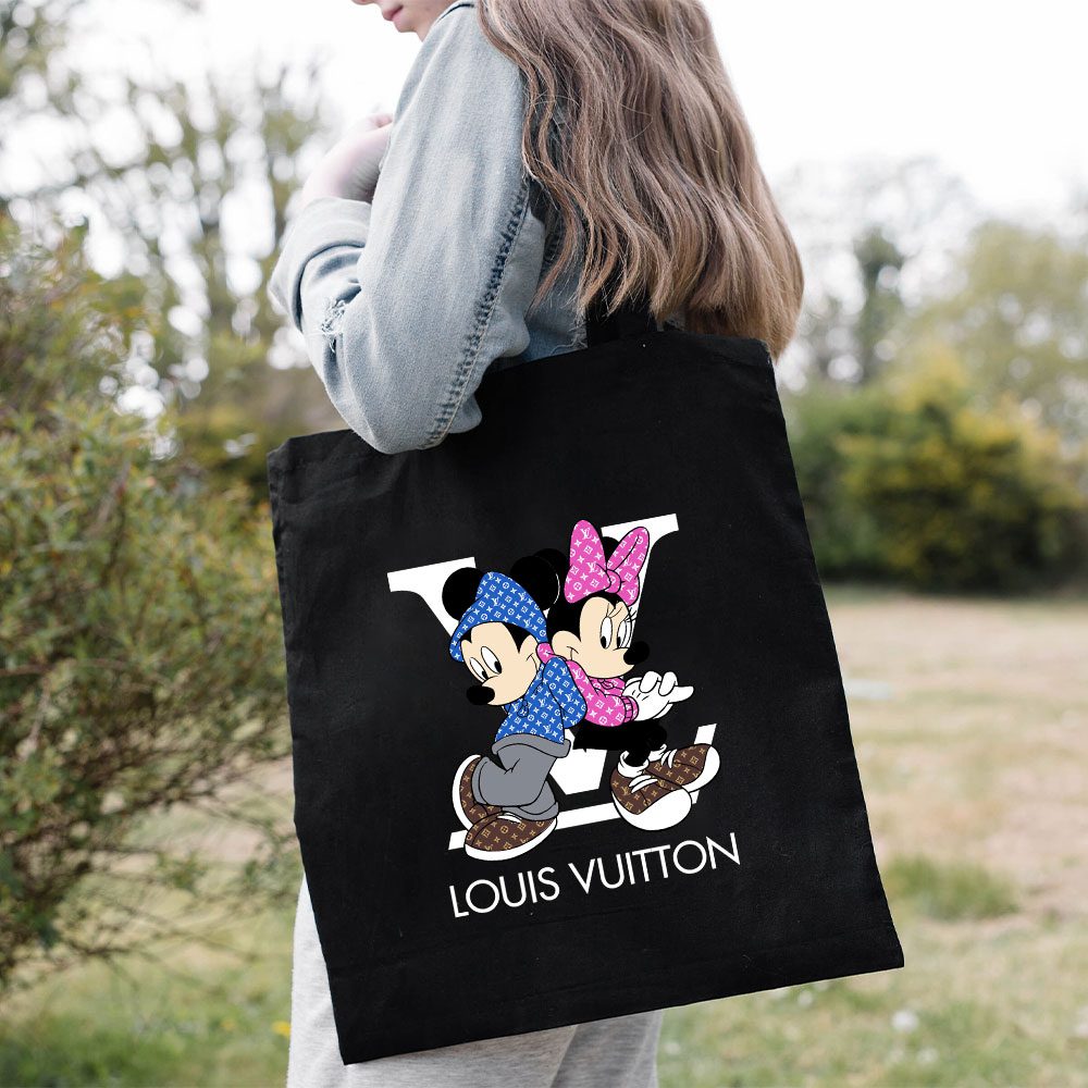 Louis Vuitton Monogram Canvas Pattern Mickey Mouse And Minnie Mouse Cotton Canvas Tote Bag TTB1688
