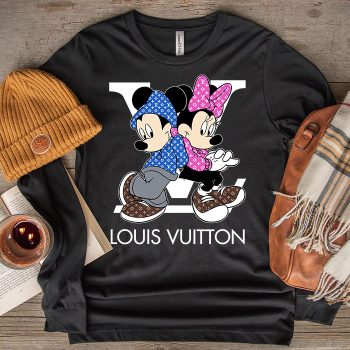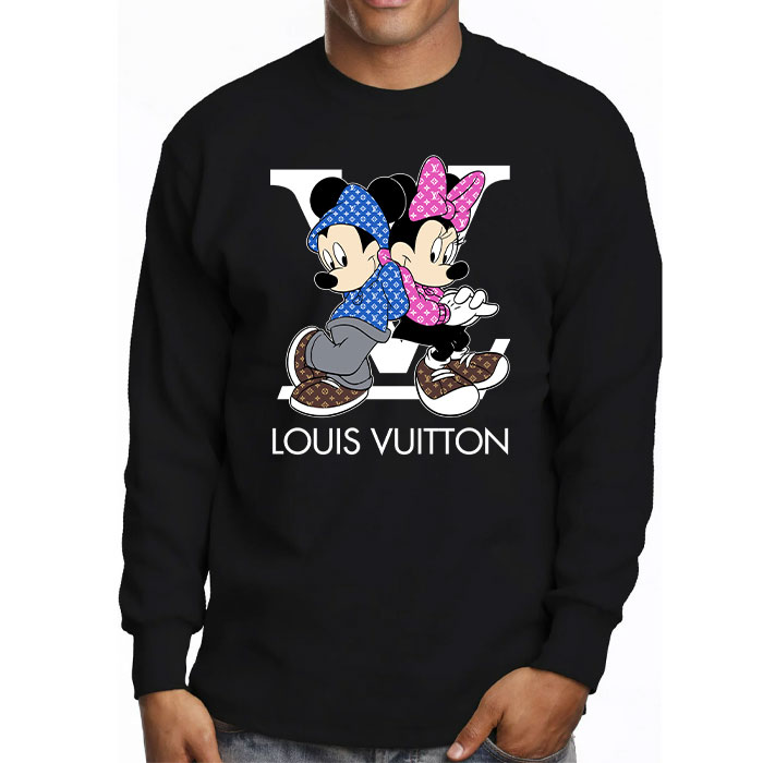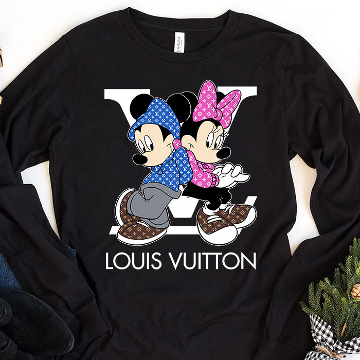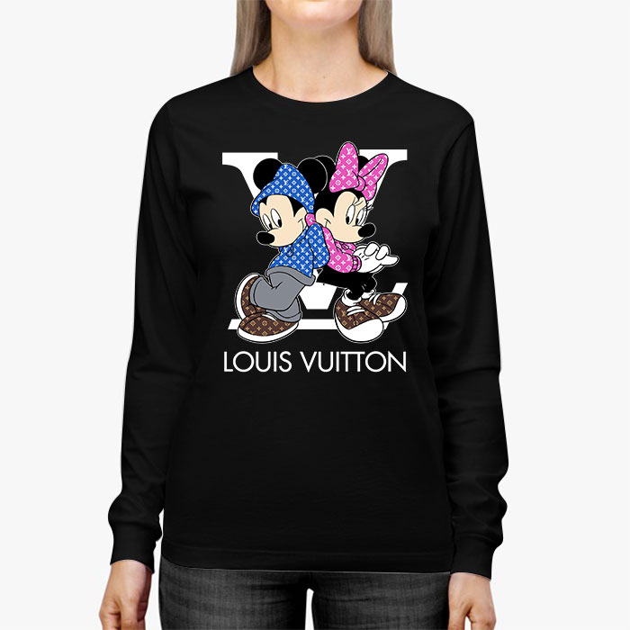 Louis Vuitton Monogram Canvas Pattern Mickey Mouse And Minnie Mouse Unisex & Kid Long Sleeve Tee TBL154