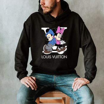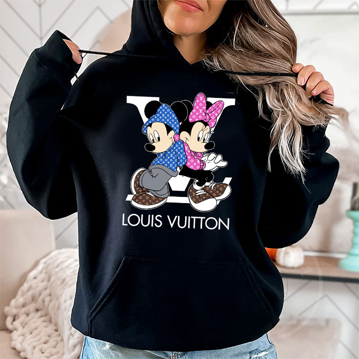 Louis Vuitton Monogram Canvas Pattern Mickey Mouse And Minnie Mouse Unisex Pullover Hoodie TB160