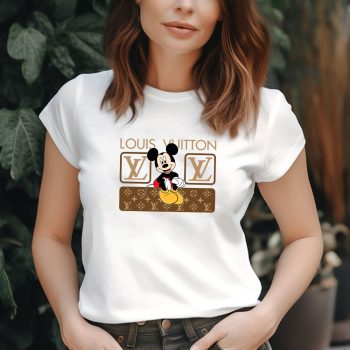 Louis Vuitton Monogram Canvas Pattern Mickey Mouse Lady T-Shirt Luxury Tee For Women LDS1692