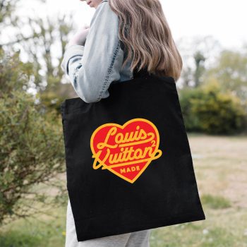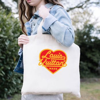 Louis Vuitton Nigo Intarsia Jacquard Heart Crewneck Cotton Canvas Tote Bag TTB1666