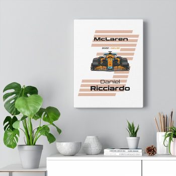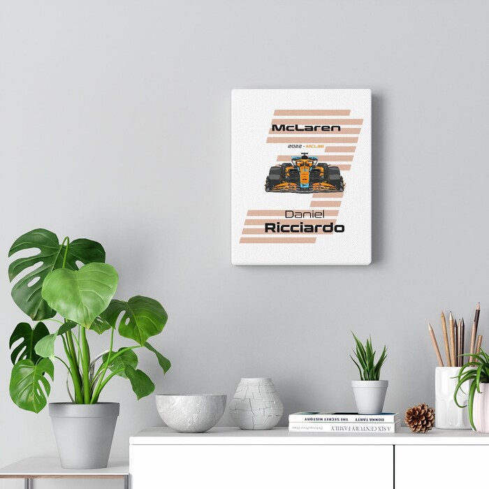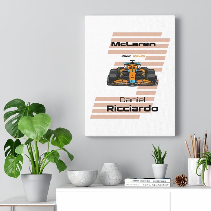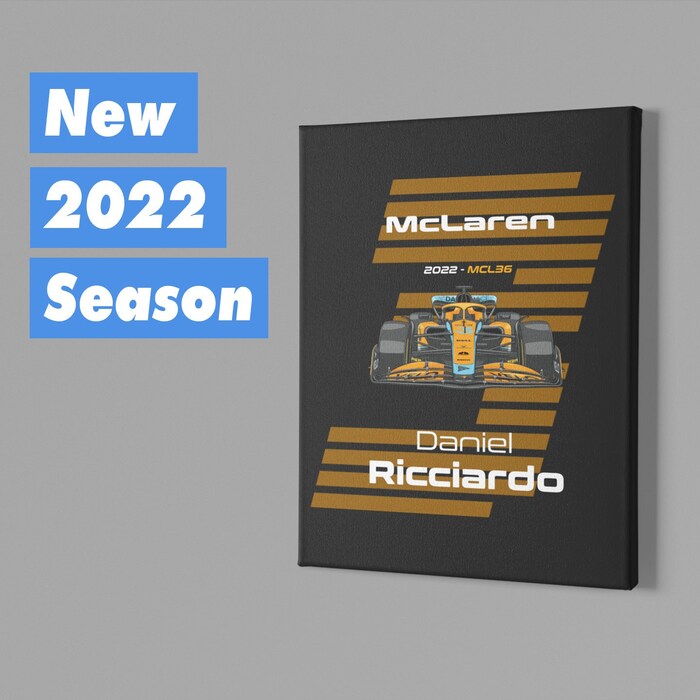 McLaren Formula 1 2022 Daniel Ricciardo #3 Racing Car MCL36 Canvas Art Print Gift for F1 Fan Formula One – White