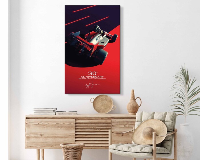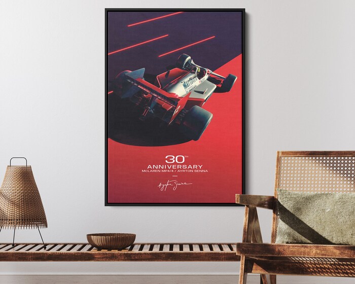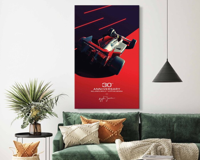 McLaren MP4/4 Ayrton Senna Formula 1 Poster – Formula One Driver Print Canvas – Hand Drawn Senna – F1 Car Wall Art – Formula 1