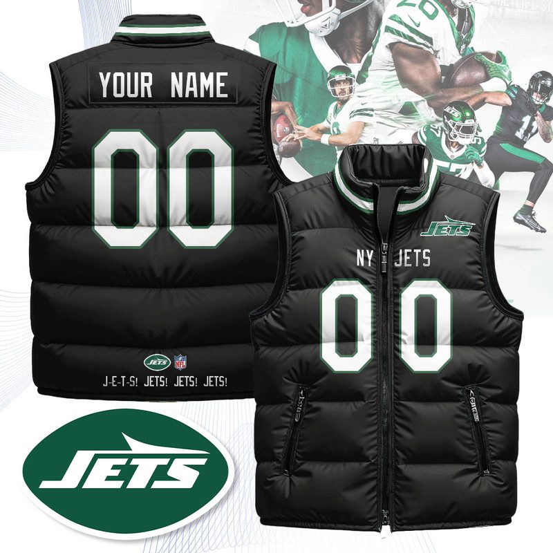 New York Jets Unisex Puffer Custom Vest – Black