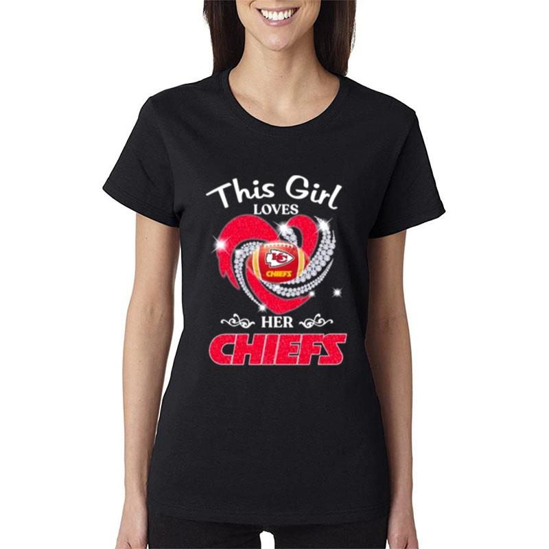News This Girl Loves Her Kansas City Chiefs Heart Diamond 2023 Women Lady T-Shirt