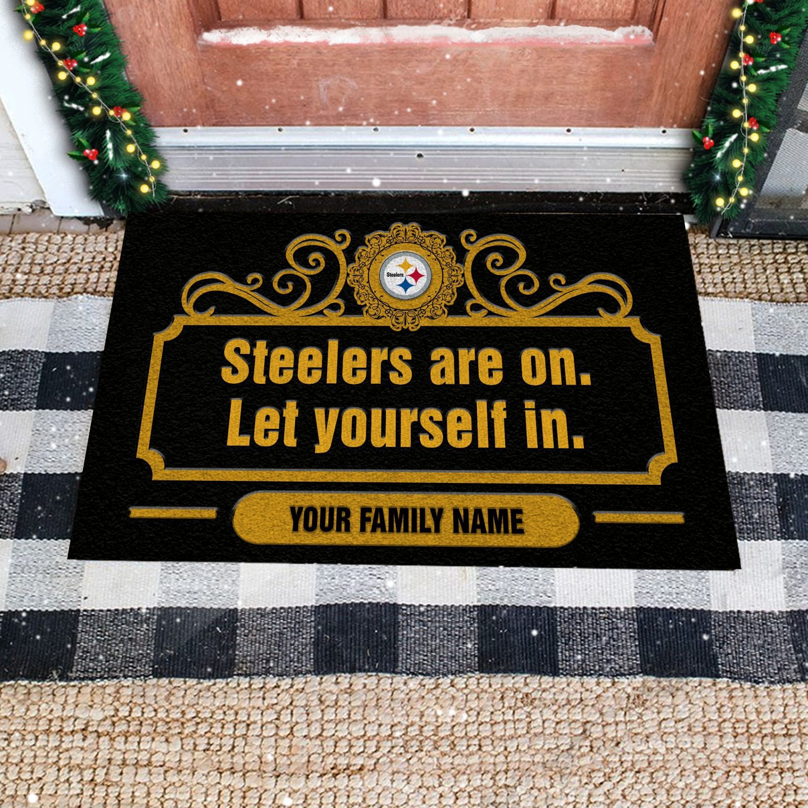 Pittsburgh Steelers Are On Let Yourself In Custom Personalized Retro Doormat Welcome Mat DM1926