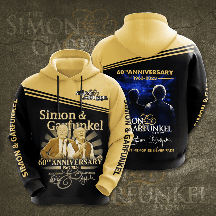 Simon & Garfunkel Signatures 60th Anniversary 3D Unisex Pullover Hoodie – Black Light Yellow IHT1889