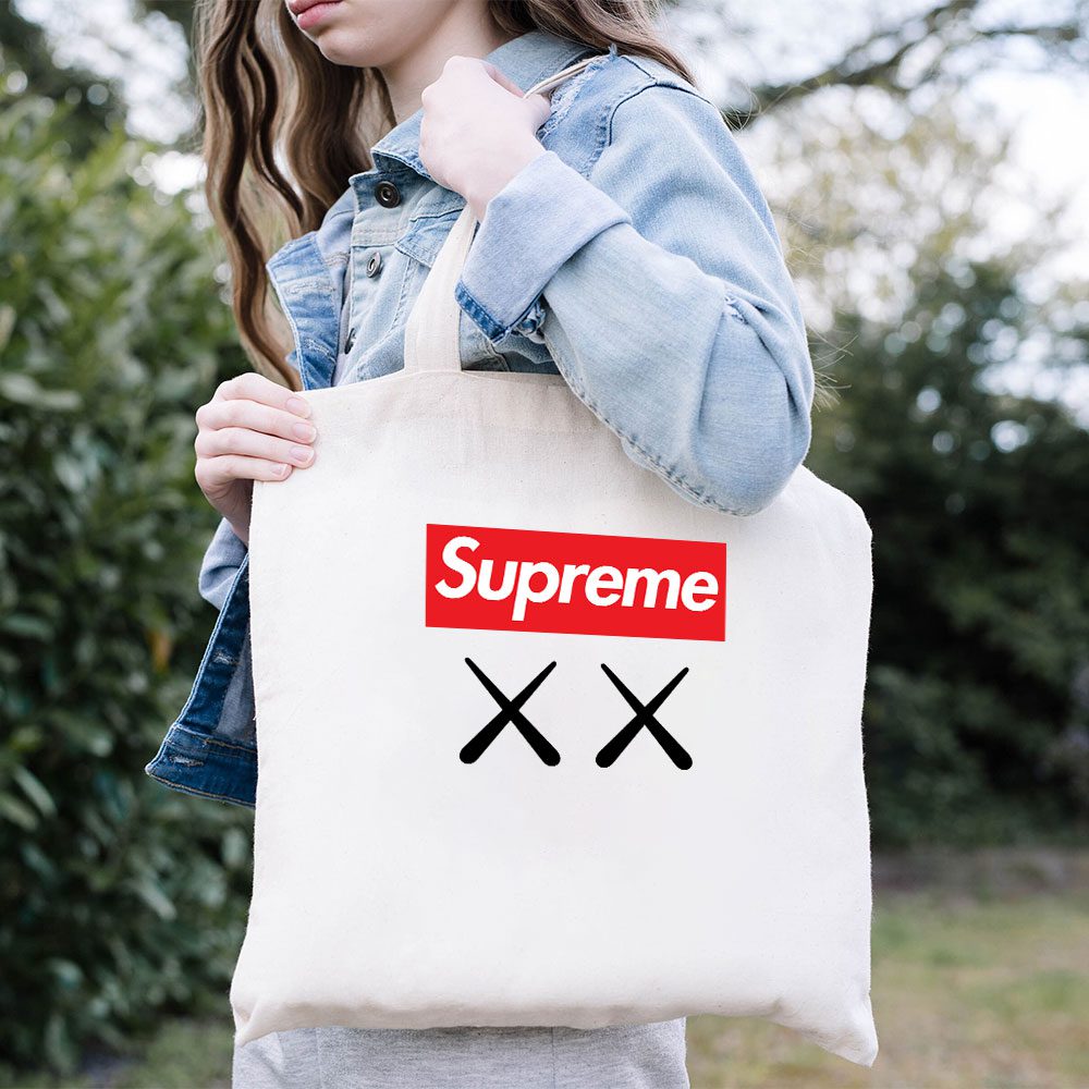 Supreme X Kaws Logo Cotton Canvas Tote Bag TTB1864