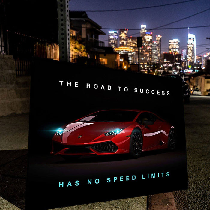 The Road To Success Has No Speed Limits Motivational Canvas Poster Print Wall Art Decor