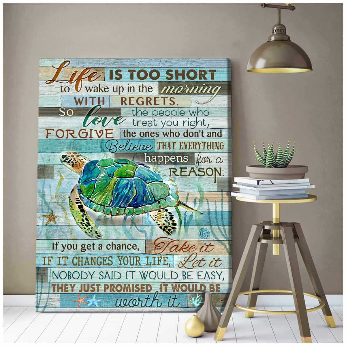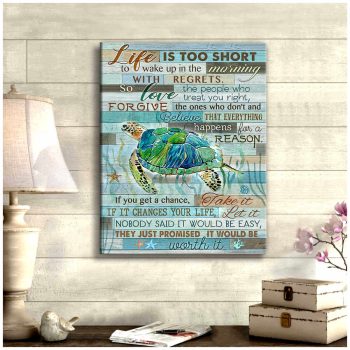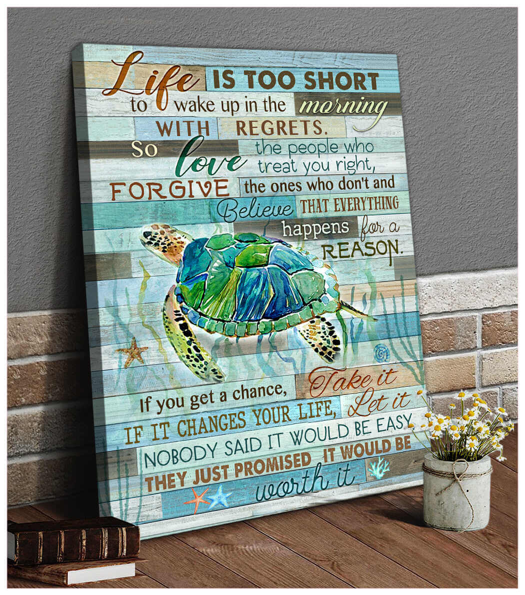 Turtle Canvas Life Is Too Short Wall Art Decor
