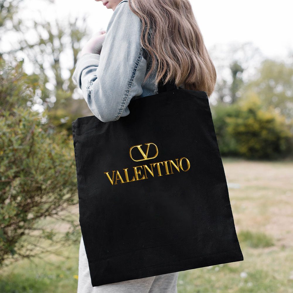 Valentino Gold Logo Luxury Cotton Canvas Tote Bag TTB1903