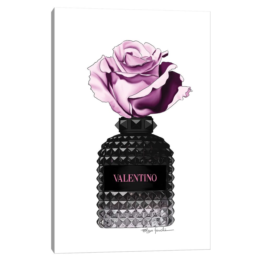 Valentino Perfume & Rose – Black Framed Canvas, Stretched Wrapped Canvas Print, Wall Art Decor