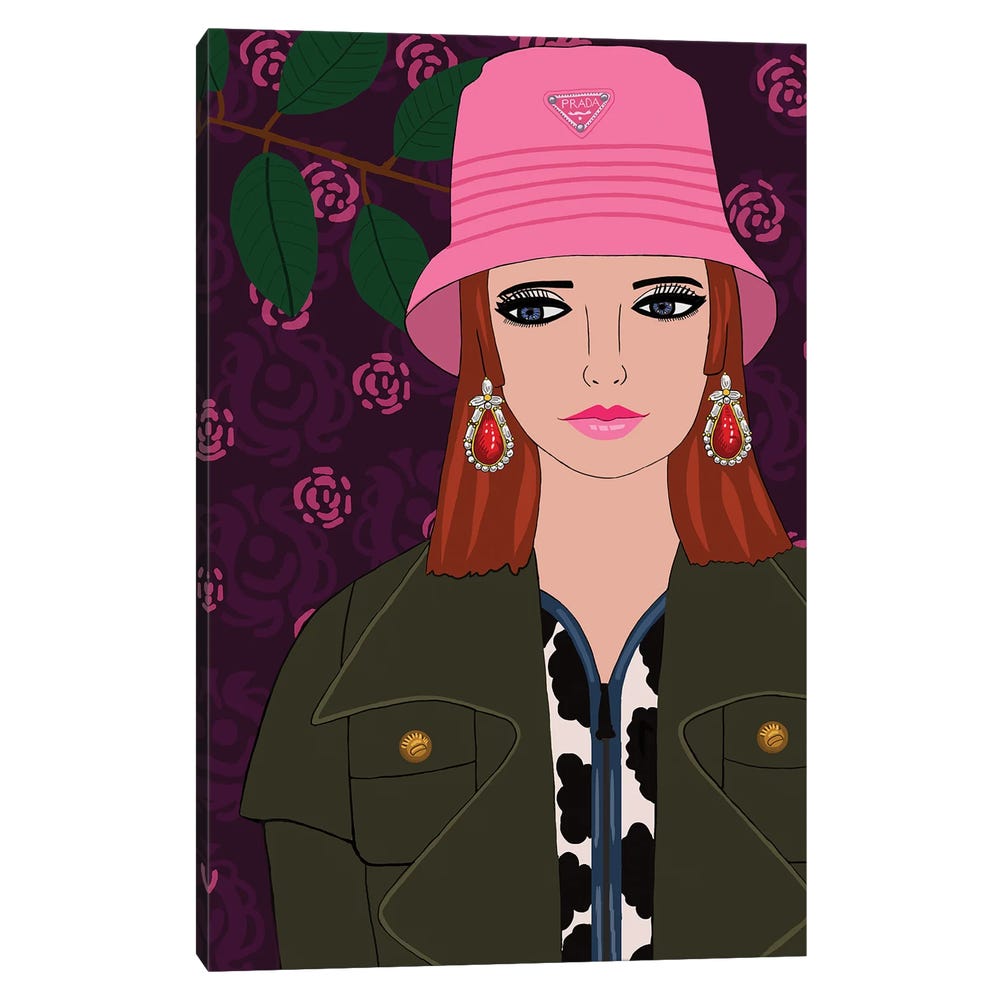 Woman With Pink Prada Hat – Black Framed Canvas, Stretched Wrapped Canvas Print, Wall Art Decor