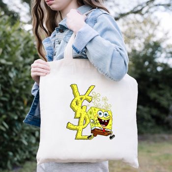 Yves Saint Laurent Logo Luxury Spongebob Cotton Canvas Tote Bag TTB1975