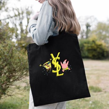 Yves Saint Laurent Logo Luxury Spongebob Cotton Canvas Tote Bag TTB1978