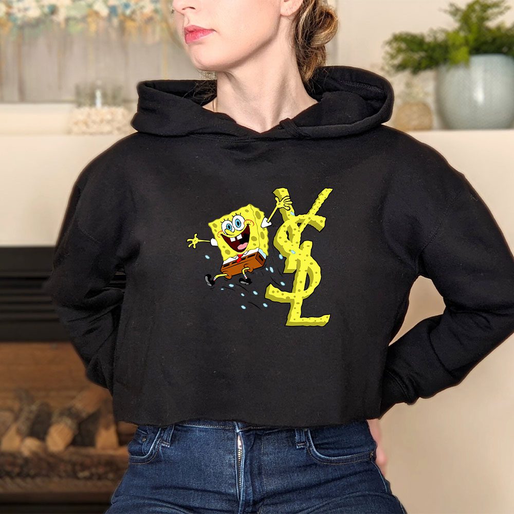 Yves Saint Laurent Logo Luxury Spongebob Crop Pullover Hoodie For Lady CPH1977
